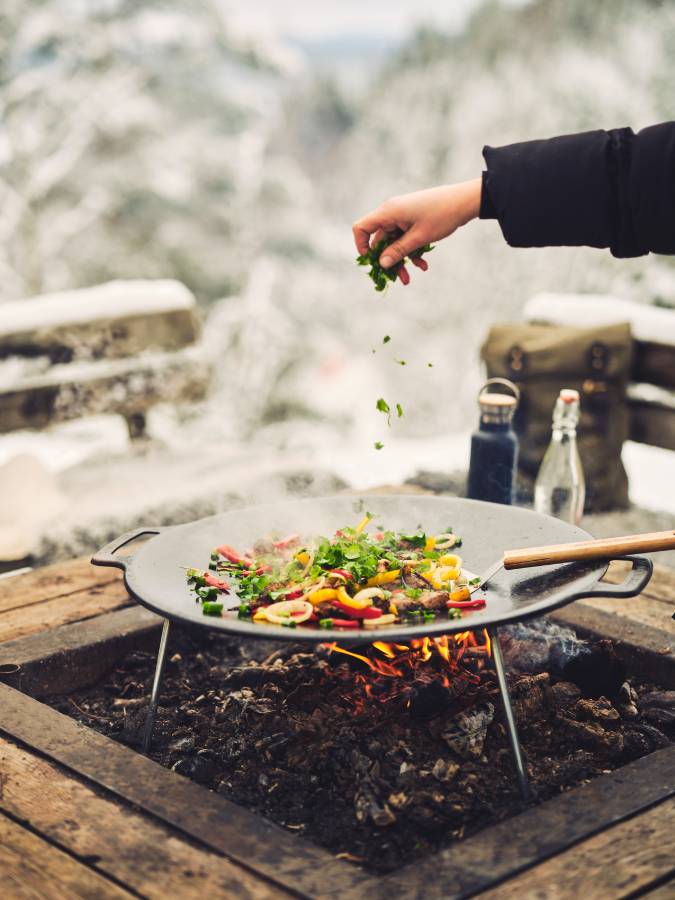 Stekhäll i varmvalsat stål med avtagbara ben, perfekt för användning på gasolbrännare, elgrill eller över öppen eld. Hällen har en diameter på 48 cm och benen är 20 cm långa. Levereras i en praktisk skyddspåse. Förvara stekhällen torrt när den inte används.